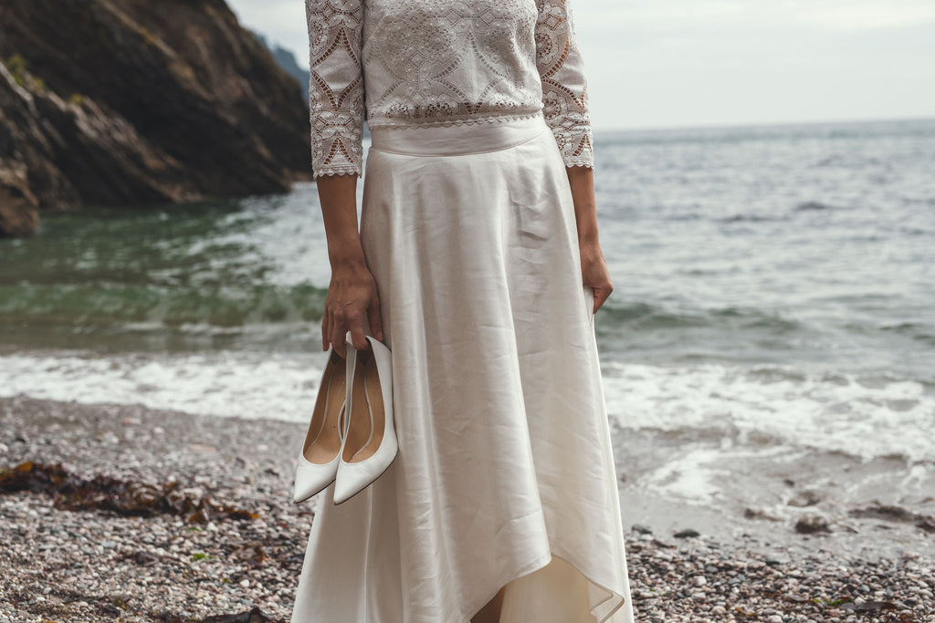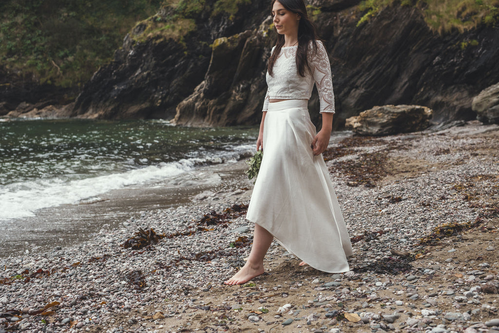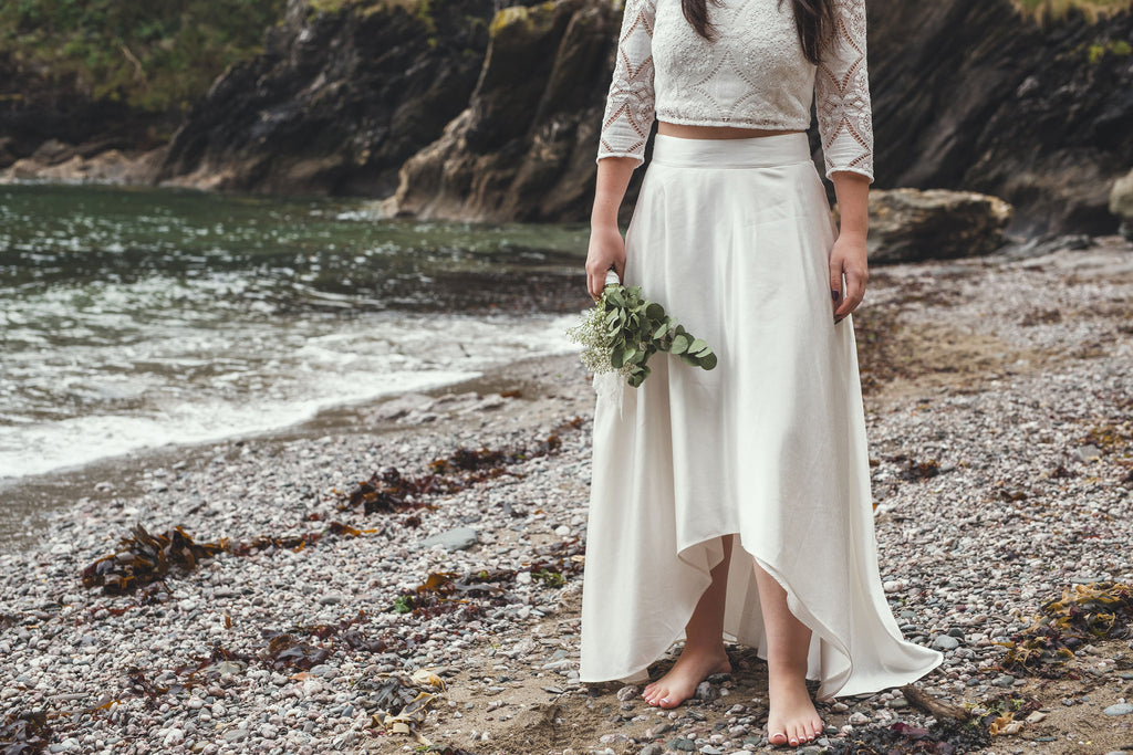 ‘Iona' hi-low hemp/silk bridal skirt