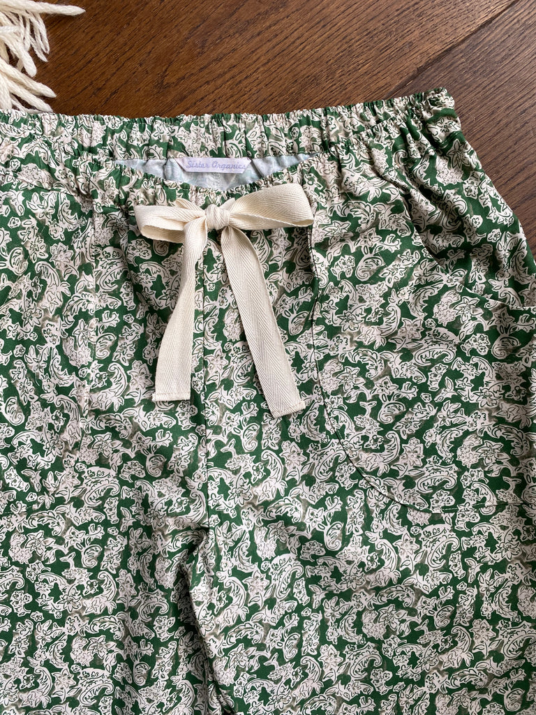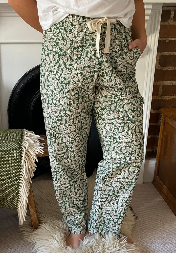These PJ bottoms are handmade to order in a beautiful leaf design on soft woven organic cotton. The luxurious certified organic cotton fabric is beautifully crisp but soft and feels fantastic to wear.